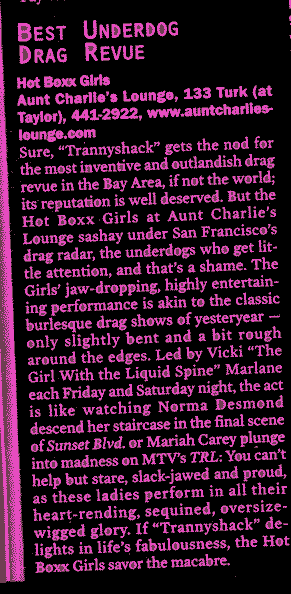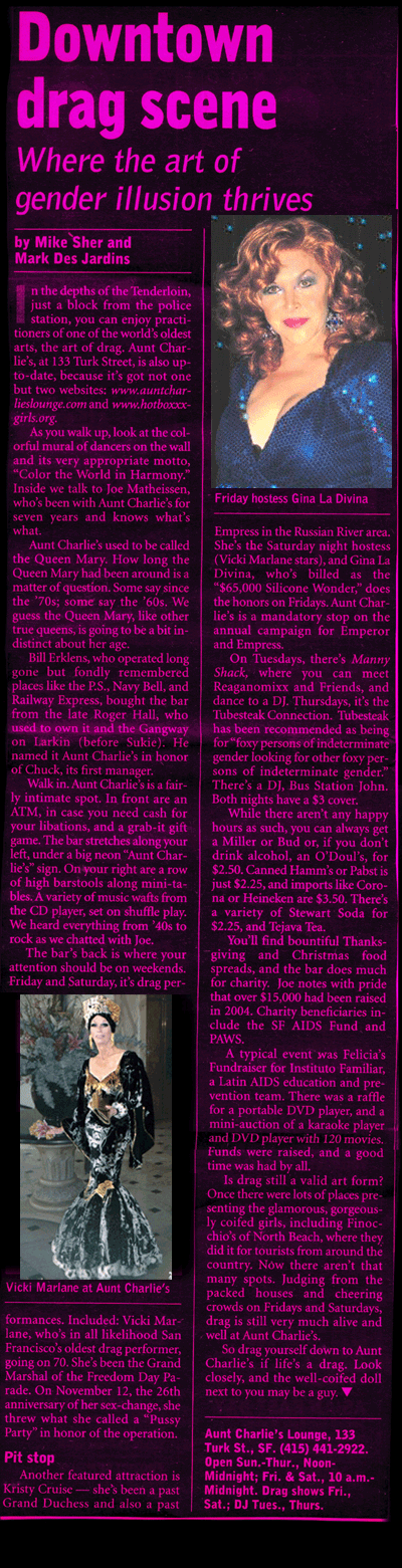 who isn't?), Aunt Charlie's Lounge in San Francisco is the place